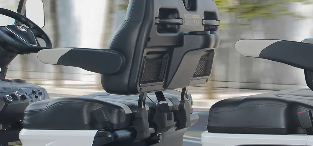 Ride in comfort with our ergonomically designed seats, featuring built-in handrails, cup holders, storage pockets, and USB charging ports. Every detail is crafted to enhance your journey.